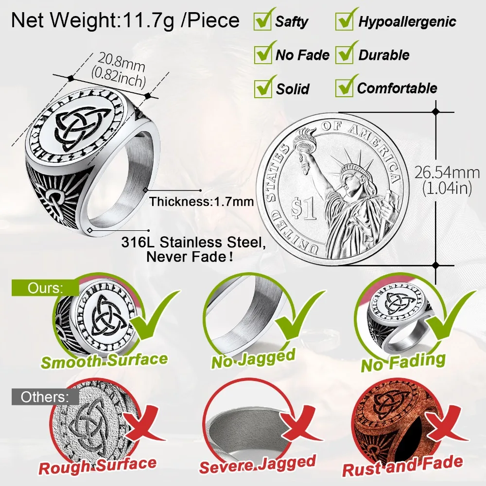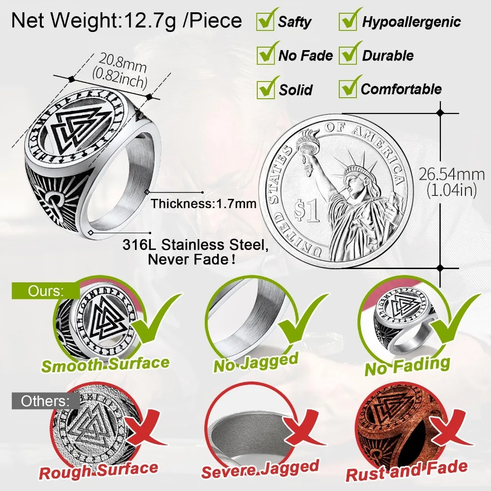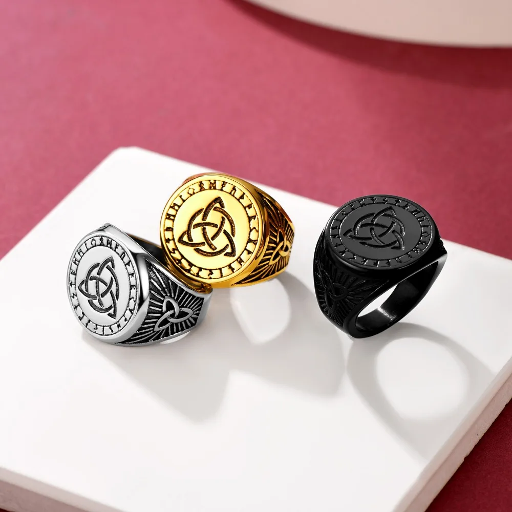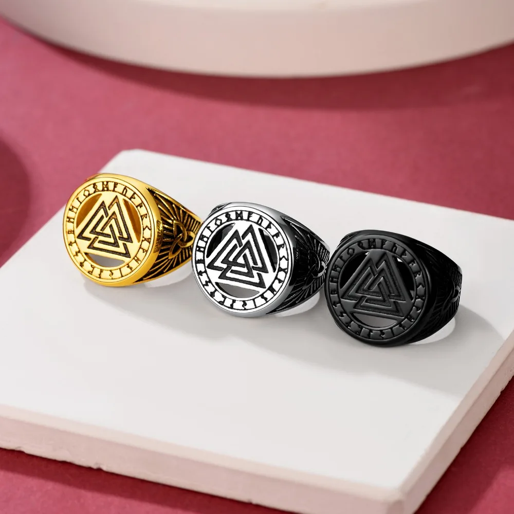 - La triangle d’Odin (Valknut) : signifie « nœud des occis » en vieux norrois, de valr « guerriers tués » et knut « nœud ». Cette figure composée de trois triangles entrelacés, est lié au Dieu Odin évoquant la vaillance face à la mort.